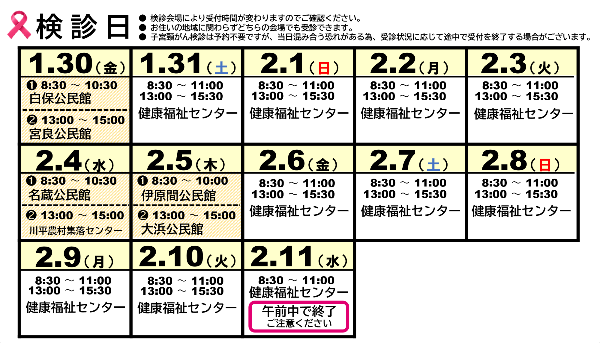 ※ 乳がん検診を予約されている方のなかで子宮頸がん検診を同時に希望される方は、検診当日、会場受付で子宮頸がん検診を希望する旨をお伝えください。