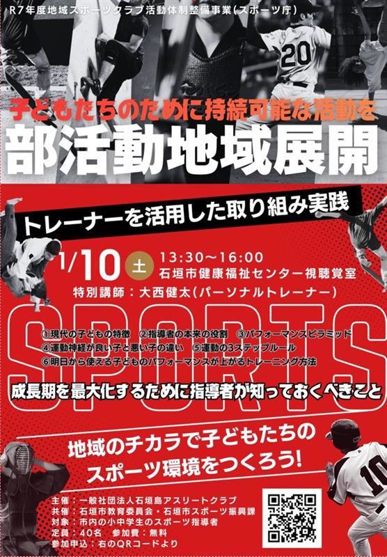 7.対象者 石垣市スホ゜ーツ少年団及び中学校部活動の指導に関わる指導者(定員:先着40名)