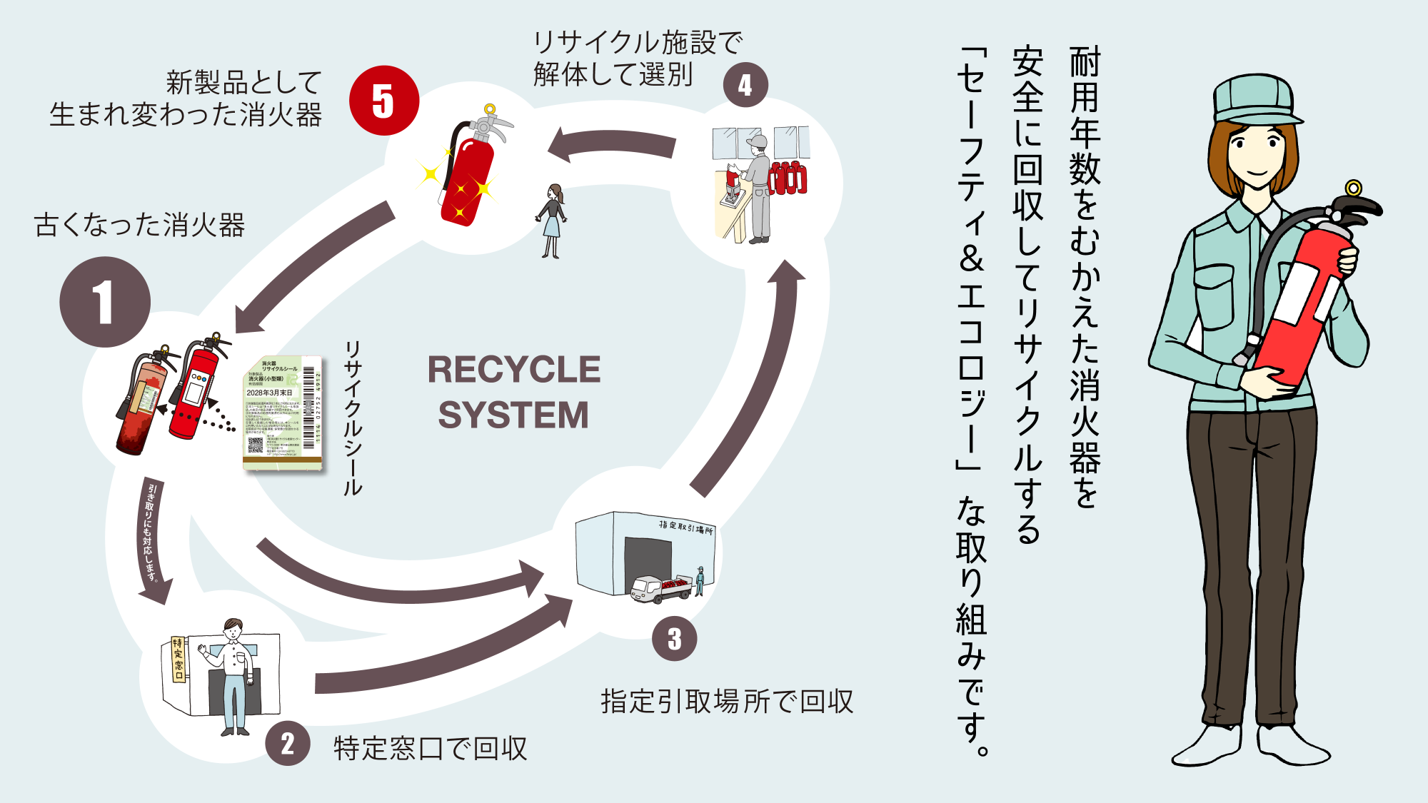 (リサイクルシールが貼られていない廃消火器を引き取ることはできません)。